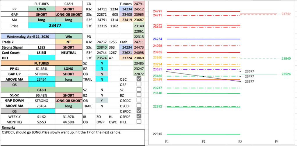 I woke up and plotted my lines, saw that it was OS and should go SHORT. I saw a trade 2 and it was valid. Price gap down and went to my direction. I got nervous and adjusted my stops at the open of price. Price move down to 80 points, then reverses and went back to the gap and hit my SL. Then it reverses and slowly went down till it hit my target TP. Today should be a win, didn’t execute properly. Trade 2 was a win as well but didn’t trade it as I got scared.